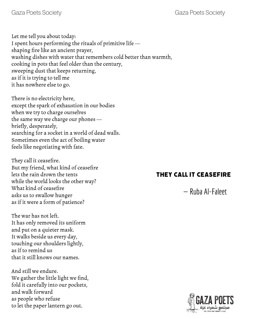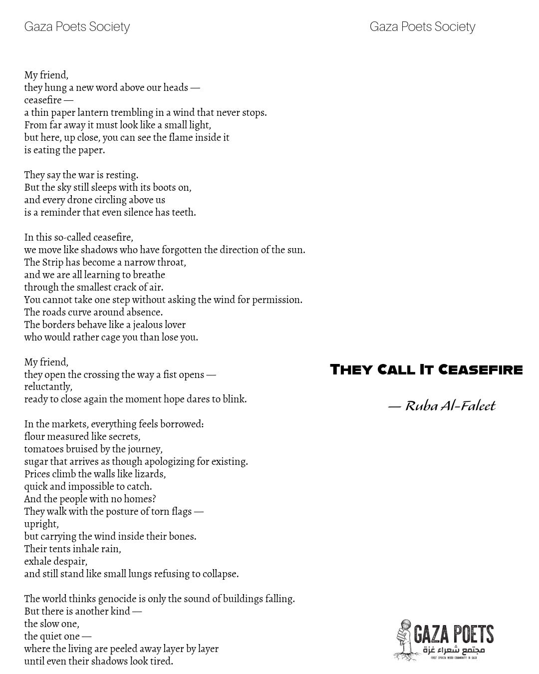 Read a new poem by Ruba Al Faleet, they call it a ceasefire